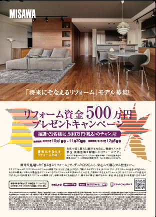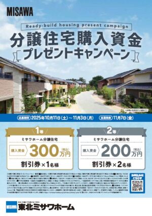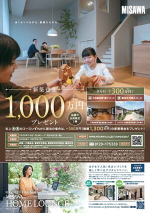 ミサワホームイベント情報 2024.10.072025.10.15 分譲資金チラシ(PDF) 新築資金1000万円チラシ(PDF) リフォーム資金500万円チラシ(PDF) —————————————————————————— 【秋田県のミサワホーム 分譲、イベント情報はこちら!】 来場予約↓↓ お電話はこちらから
