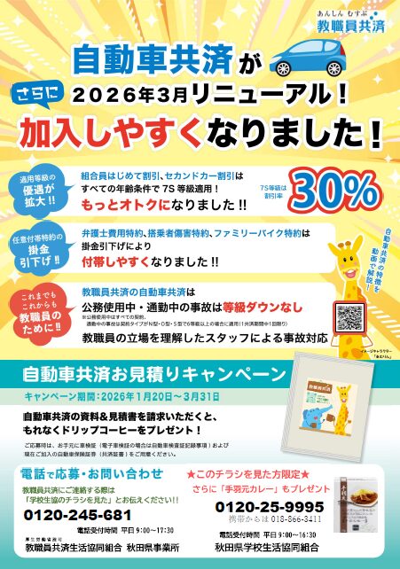 教職員共済にご連絡の際は「学校生協のチラシを見た」とお伝えください★